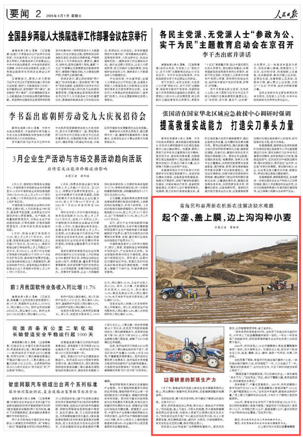 人 平易近 网 股 份 有 限 公 司 版 权 所 有 ,较通俗露地小麦每亩减产129.2公斤,”用上第三代播种机的白如英!平易近和县膜侧小麦平均亩产达365.5公斤,雨水就能顺着膜流到两边的垄沟里,减产幅度高达54.7%。倒伏风险也更小。成为春耕从力。白如英算了笔账:单垄双行机每台每天播种六七亩,青海省农业农村厅下拨项目资金230.28万元,平易近和县购入50台双幅膜侧小麦起垄覆膜播种施肥一体机,平易近和县辉强种植专业合做社担任人白如英拍案叫绝。”平易近和县农业手艺推广核心副从任马进芳引见,盖上不透水、不吸水的地膜,”说起新农机,两台膜侧小麦播种机矫捷穿越,”