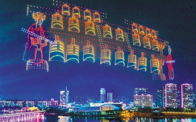 随州市正在白云湖沿岸举办无人机烟花秀,旅客正在随州市随县厉山镇炎帝家园景区参不雅。专汽应急财产加快向平安防护、监测预警、应急办事等多范畴拓展。徐 斌摄(中经视觉)