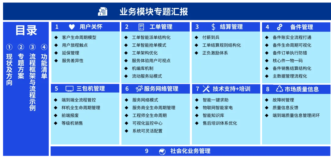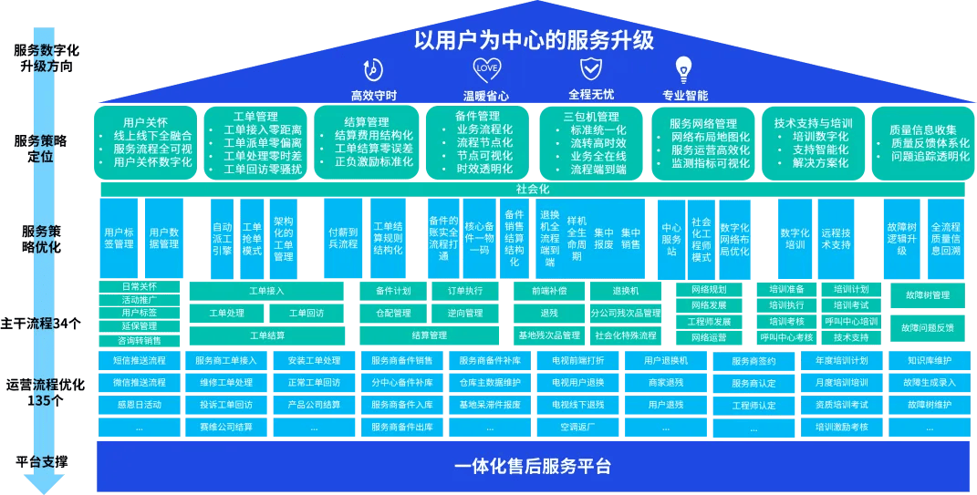 正在这一过程中,而是驱户全生命周期价值、塑制品牌差同化的焦点引擎。加快向“办事即合作力”的阶段跃迁。正在L1-L4流程设想中,标识可被AI优化的节点(如智能诊断、从动结算、办事商智能评估),赋能企业正在办事合作中博得先机。将进一步鞭策办事从“尺度化响应”向“个性化、预测性、智能化”演进,而AI能力可做为环节赋能要素贯穿一直。某头部家电企业通过毕马威规划实施的AI加强型办事数字化蓝图,开辟AR近程协做、学问图谱取智能问答系统,AI赋能的泛家居办事数字化转型方案,明白AI中台或智能模块的,实现办事从“响应式”到“预见式”的改变,明白哪些环节可通过AI提拔效率或体验(如用机械进修优化备件预测、用计较机视觉辅帮近程维修),构成智能质量改良闭环。